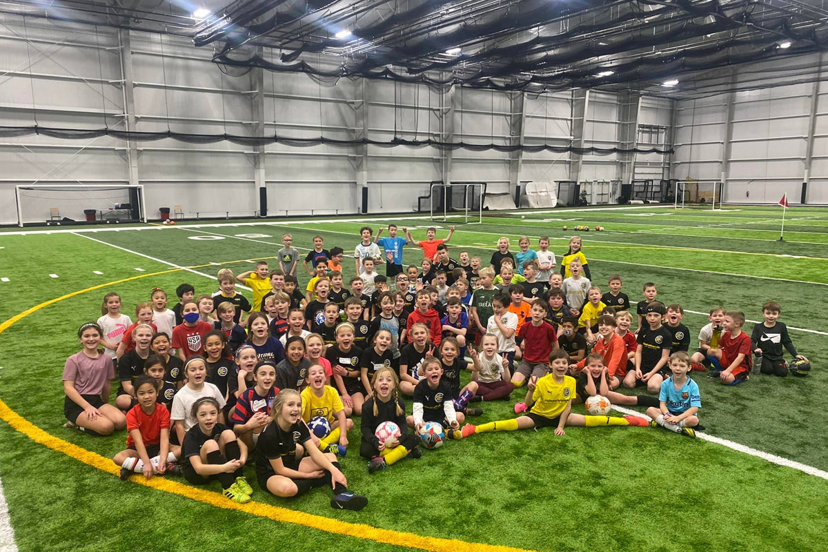 35,000 sq. ft. turf field ideal for soccer, baseball, football, and multi-sport training.