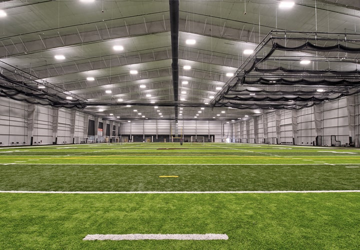 35,000 sq ft. turf field ideal for soccer, baseball, football, and multi-sport training.
